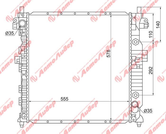 Радиатор охлаждения /AUTOLEADER для SsangYong Kyron 2005- Actyon 2005-2006 /без крышки; SY-ACTYON-1226; (TG6041226) SY0002 2131009150 2131009152